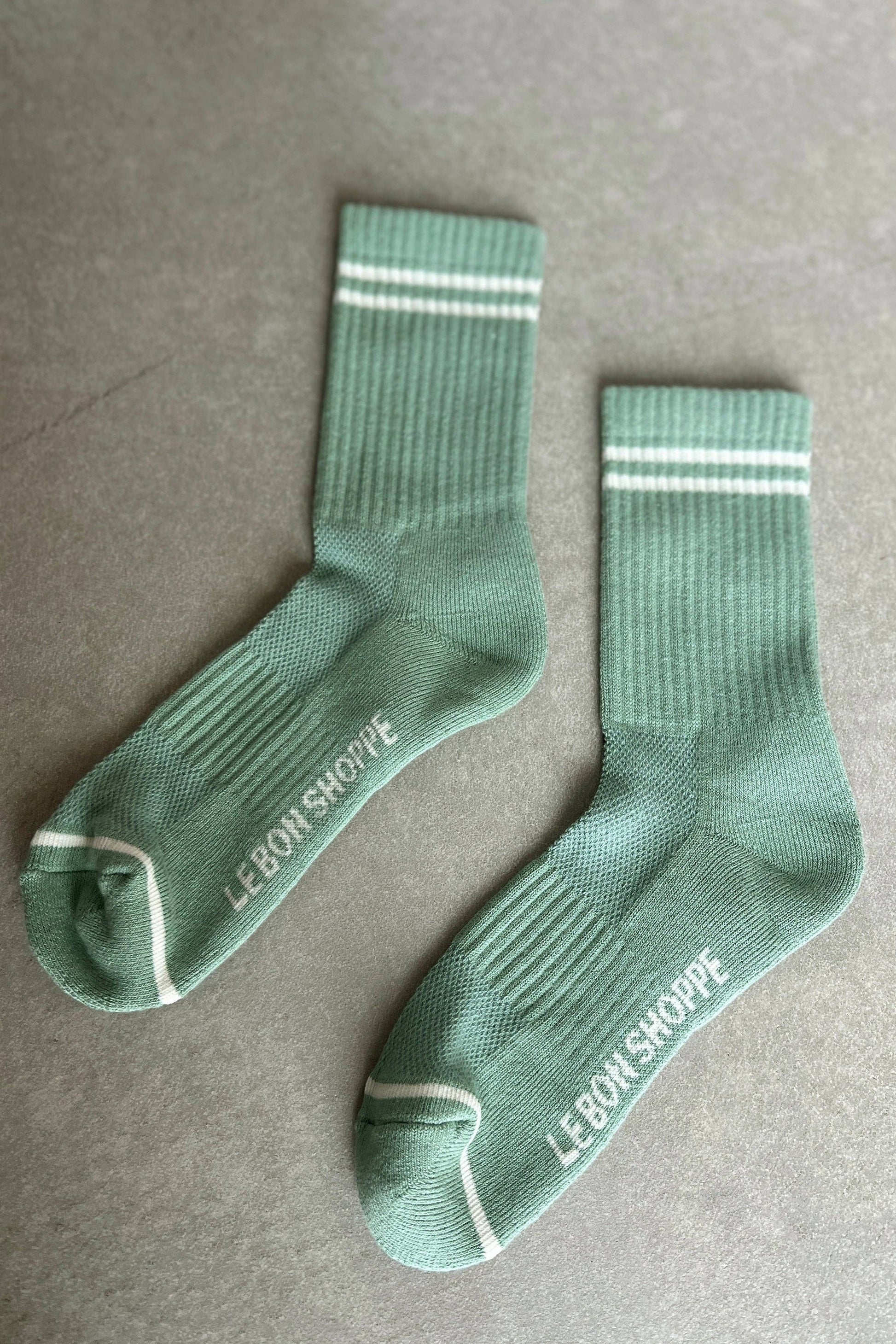 The Boyfriend Sock is one of our signature styles and a year round bestseller. She is the perfect mix of function and fashion creating an effortless sporty vintage charm to any outfit. She is slightly longer than a classic crew and has a contrast double stripe. Durable and comfortable she upgrades any outfit. One of our go-to pairings well-worn denim and Converse chucks. We are obsessed and over at the Le Bon Shoppe HQ you can find her on a pair of happy feet nearly 365 days a year. We don't like to play favorites so shhh don't tell anyone but this girl has a special place in our heart!
