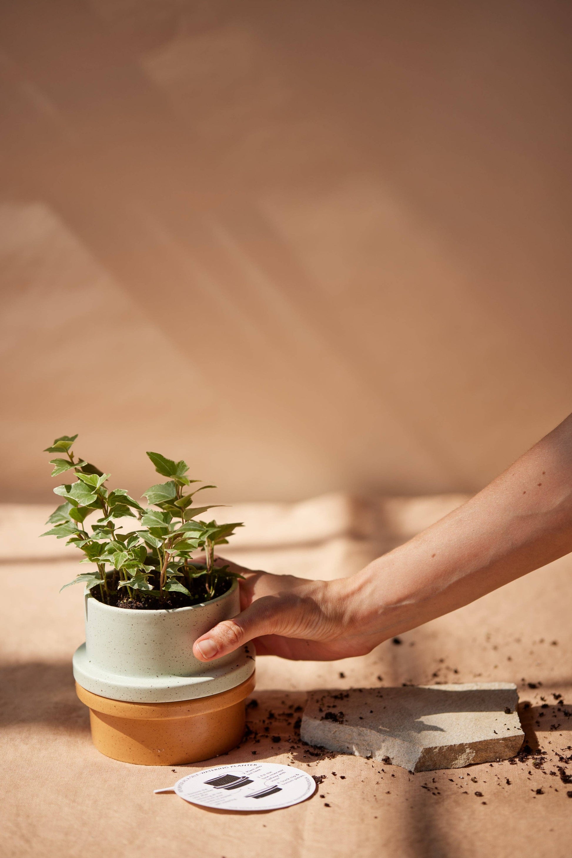 Calling all candle lovers with green thumbs! The Folia candle collection showcases two speckled ceramic vessels made to be combined into stackable, self-watering planters once the wax runs out. Mix-n-match to create a colourful planter and scent combination as unique as you are. Flip the dustcover to discover how to repurpose your candle in a few simple steps!